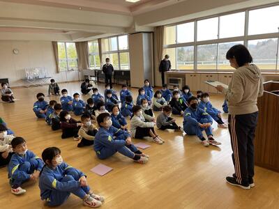 3時間目は全校生が集まって、オリエンテーションの時間でした。これは、芦沢小学校の決まりについて全員で確かめる時間です。朝の時間の過ごし方や廊下の歩き方、清掃の決まり、室内外での服装についてなど、みんなで確認したり、考えたりしました。最後に、明日から始まる縦割り清掃の場所に班ごとに移動し、自己紹介をして終了しました。早速、廊下の右側を静かに歩いて移動することができていました。