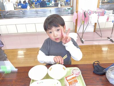 また、初めての給食でしたが、なんと6人全員完食!朝からがんばったから、みんなおなかがとってもすいていたようです。大満足の初給食だったようです。