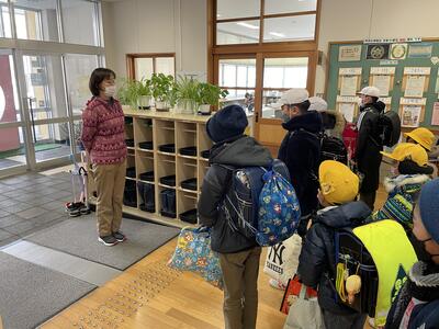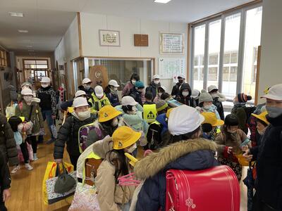 今日は午後3時過ぎに一斉下校でした。あいにくの雪だったため、昇降口で「さようなら」になりました。すでに登校班の班長は5年生に引き継いでいますが、1年間お世話になった6年生に全校生がお礼のあいさつをしました。明日、6年生は保護者の方と登校します。いよいよ明日が卒業証書授与式になります。