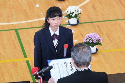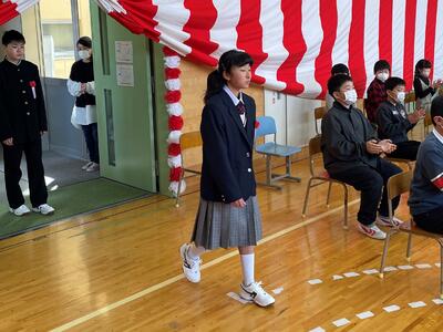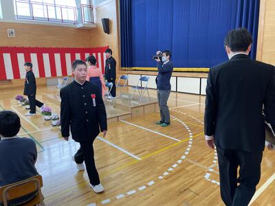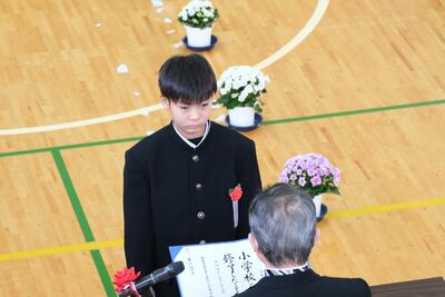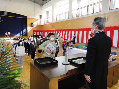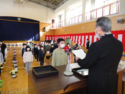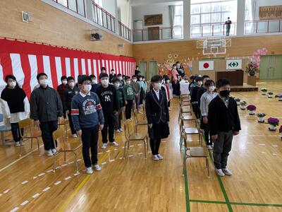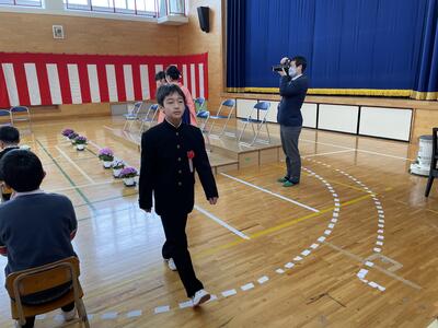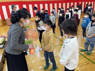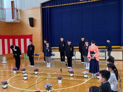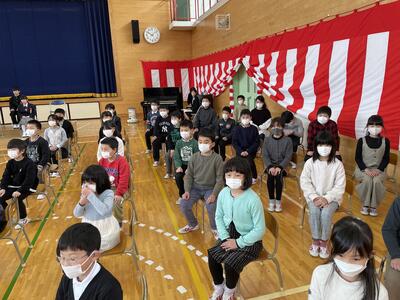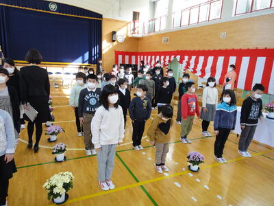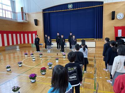 卒業式の前に、1~5年生が参加する修了式がありました。1年生は初めての参加でしたが、「1年生、9名!」と言われると「はい!」と元気いっぱいの気持ちの良い返事ができていました。各学年とも、立派に成長しました。4月からの新年度が待ち遠しいですね!