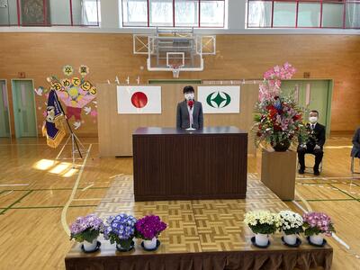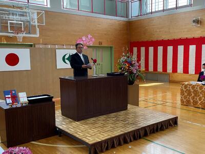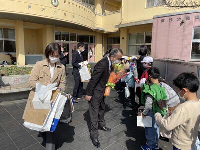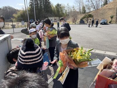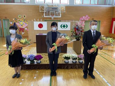 2022年3月30日 10時51分 今日は3月末で芦沢小学校から異動される先生方とのお別れの式(離任式)がありました。今年度は4名の先生方とお別れです。
