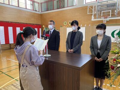 卒業生と在校生による呼びかけ「旅立ちのことば」では、今までの思い出を懐かしんだり、お家の方や先生、友達への感謝の気持ちが込められた言葉をつないでいました。