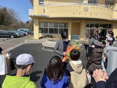 今日は3月末で芦沢小学校から異動される先生方とのお別れの式(離任式)がありました。今年度は4名の先生方とお別れです。