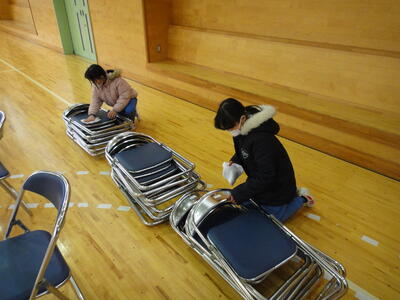 いよいよ3月23日(水)が卒業式になります。今日は1・2年生が卒業式で使うパイプ椅子を出したり、4・5年生が会場作りをしてくれたりしました。お世話になった6年生のために、みんなどんどん働いてくれました。