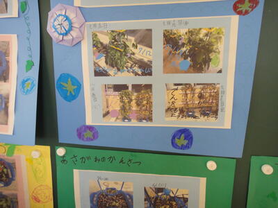 生活科の学習で育てたあさがおは、実りの秋をむかえ、種がたくさんできました。そしてまた、種をまいて色とりどりの花を咲かせてくれることと思います。今日は、今までタブレットにまとめてきた成長の様子を順序良くまとめました。成長の様子を振り返りながら、「あさがおってすごいね!」と、実感した子どもたちでした。