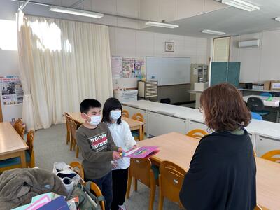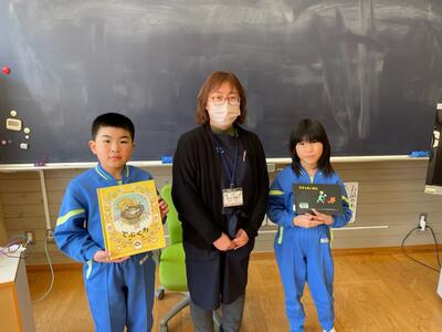 2022年3月15日 18時43分昨年の7月から、図書支援員として吉田由美子先生にお世話になりました。読み聞かせをしていただいたり、面白い本や新しい本を紹介していただいたりして、芦沢小の子どもたちが素敵な本に出会う機会をたくさんつくってくださいました。吉田先生の今年度の最後の勤務日が今週の火曜日だったので、給食の時間にご挨拶をいただきました。ぜひ来年度もお世話になりたいです!ありがとうございました。