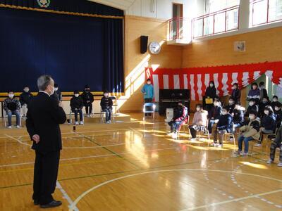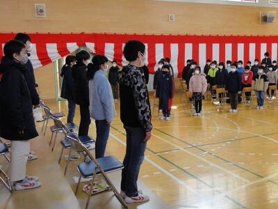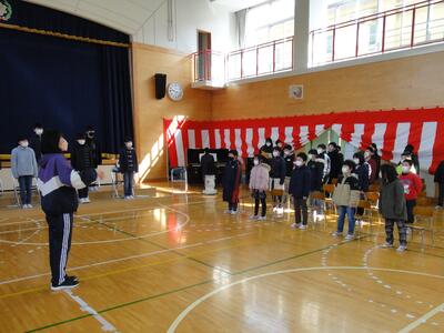 今日の2時間目には、全校生で卒業式の、第一回目が終わりました。「おめでとう」「ありがとう」「中学校でも頑張って」という気持ちを「姿勢」「歌」「旅立ちのことば」で伝えるための練習です。春の日差しも見られた体育館に、子どもたちの元気のよい歌声や言葉が響きわたりました。今年度初めての全体練習でしたが、緊張感があり一生懸命さが伝わってきました。
