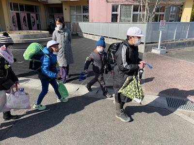 通学班の班長さんが5年生にバトンタッチされました。昨日と今日は特別時程のため全校一斉下校でした。下級生をサッと並ばせたり、担当の先生に整列完了のお知らせをしたりと、テキパキと動いてくれています。4月からは新入生も一緒に登校になります。これからもよろしくお願いします!