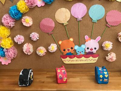 幼稚園は残り2週間となり、18日の卒園式に向け準備をしています。昇降口の園児が作った飾りもひな人形からランドセルに変わりました。待ち遠しいですね。