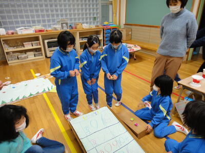 魚つりゲームやボーリングゲームなど、2年生のおもちゃ屋さんが並び、1年生がお客さんになって楽しむ姿が見られました。1年生の楽しんでいる表情を見ることができて、2年生も満足そうでした。あっという間の1時間でした。