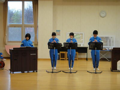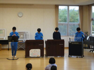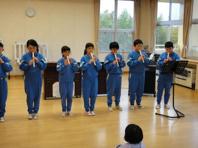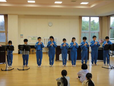 全校集会の後半には、5・6年生の発表がありました。学年ごとに、素晴らしい演奏を聞かせてくれました。動画のページでもご覧ください。
