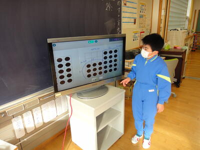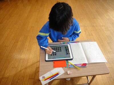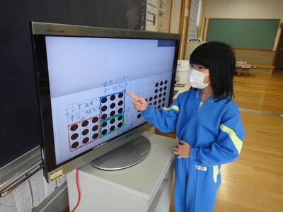 2年生の算数科の学習では、かけ算が続いています。今日は、今まで学習してきたかけ算をいかして、まとまりをつくって数を求め、そのやり方を説明する内容でした。2人とも、自分の考えを図に式や言葉を書き込み、自分の考えを説明し合ことができました。