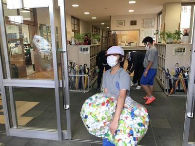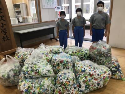芦沢小では飲み終わったペットボトルのキャップを寄付して海外の