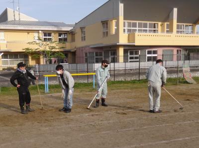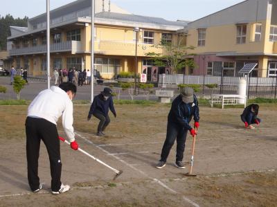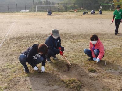 5月9日に奉仕作業を行いました。早朝から、多数の保護者の皆様にご参加いただきました。校庭の草削り、削った草集めや危険個所の看板設置等、様々な場所の環境整備をしていただきました。作業後、校庭は見違えるように美しくなりました。お忙しい中、ありがとうございました。