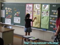 赤(血や肉になるもの)・黄(熱や力になるもの)・緑(体の調子をととのえるもの)をバランスよく食べることが大切であることを教えてもらいました。そして、毎日食べている給食にはバランスよく食材が入っていることを確認して、「残さないで食べる」「苦手なものもがんばって少しは食べる」ことをめあてにしました。