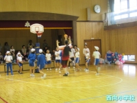 親子で一緒に楽しく運動、最後にバスケットボールの試合
