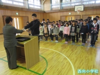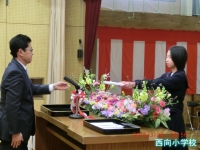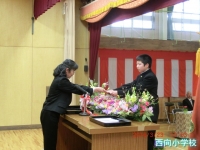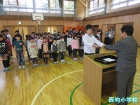 5年代表児童に修了証書が授与され,校長先生からは,「この修了証書は,1年間頑張った証です。今年度1年間を振り返って,新学期の準備をしてください。」とお話がありました。