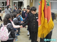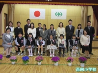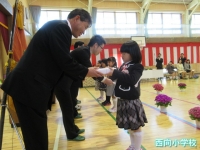入学児童呼名での返事,教科書給与,入学祝い品授与など全員が上手にできました。