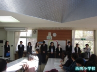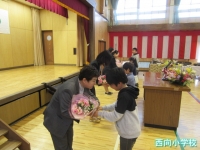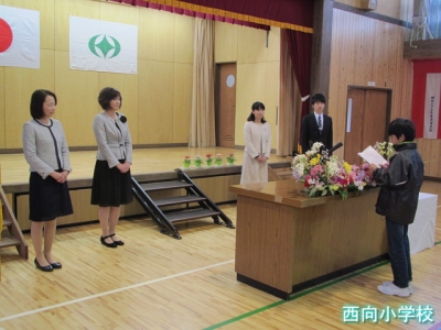 転出職員の紹介,転出職員のあいさつ,児童代表のお別れの言葉があり,お世話になった先生方とのお別れをしました。