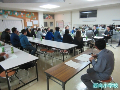 本校の運動会は,学区の西向地区・鹿山地区との連合運動会なので,行政区役員,同窓会役員,消防団役員,PTA役員等39人の方が集まり,5月7日(土)の運動会に向けた協議を行いました。参会いただいた皆さんの熱気から運動会を楽しみにしている思いが伝わってきました。