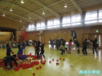 アトラクションでは,1年生VS他学年の玉入れが行われました。かなりのハンディ戦に1年生は大勝利! 大喜びでした。