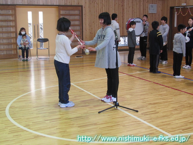 鼓笛引き継ぎ式が行われ、主指揮が6年生から5年生に引き継がれました。