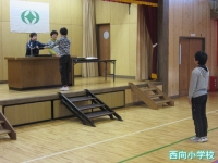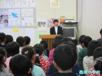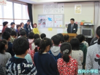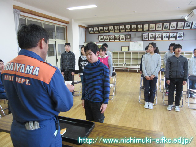 少年消防クラブに入会している6年生が、卒業しても少年消防クラブで培った防火活動をこれからも続けることを期待して、消防署より「期待書」が交付されました。消防署の方から「火事のない西向地区を目指してください」と、お話がありました。
