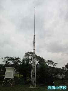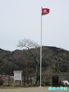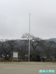 約50年前の昭和39年に西向小学校卒業生である昭士会(昭和11年卒業生)の有志の方により設置された掲揚塔が,滑車の故障,掲揚塔自体の老朽化のため,この3月に旧掲揚塔の撤去,新しい掲揚塔の設置の工事の実施となりました。