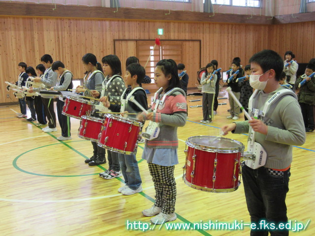 「新 西向小学校鼓笛隊」の練習の成果をご覧ください。