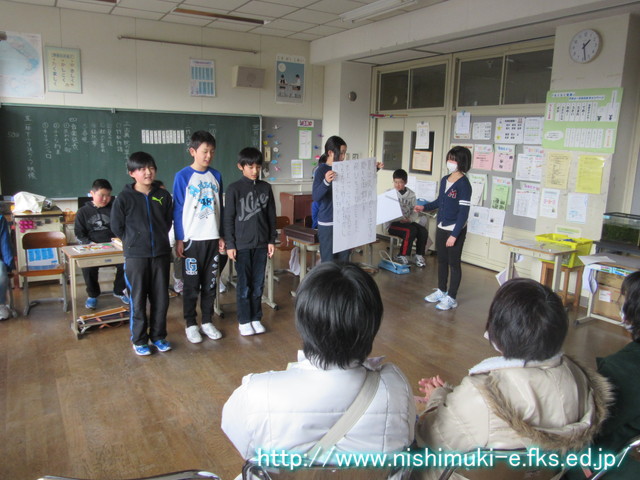 学校評議員の方は,学校関係者評価委員も兼ねているので,後期の学校評価結果について評価していただきました。子どもたちの表情が生き生きしている。教育活動をみても成長がみてとれるなどのご意見をいただきました。