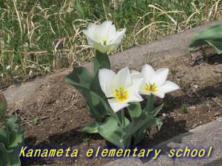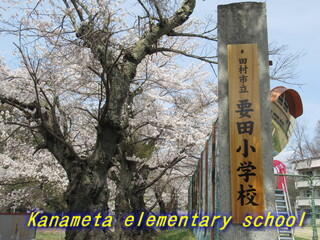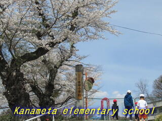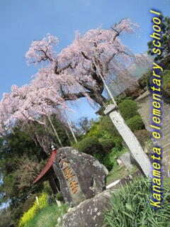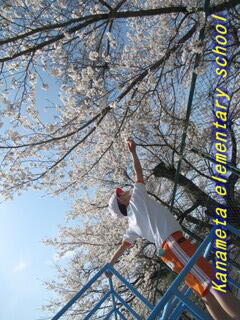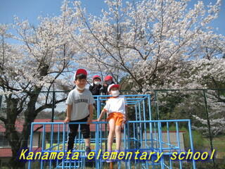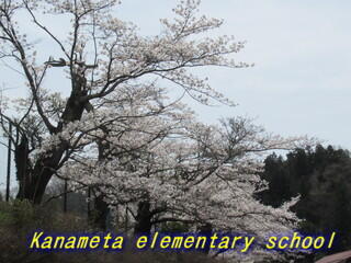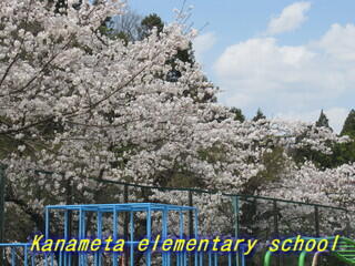 昨日までの夏を思わせる気温で,校庭の桜が満開!
