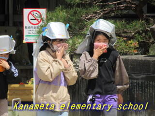 避難時は,ハンカチでしっかりと口を押さえ,煙にも注意しました。