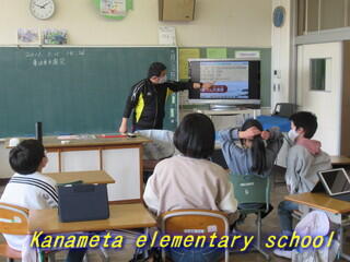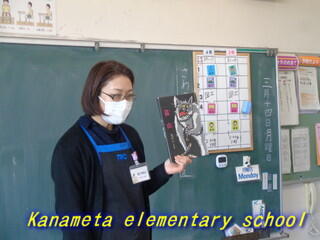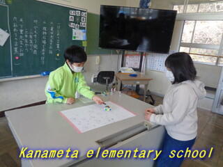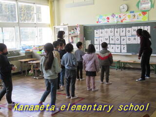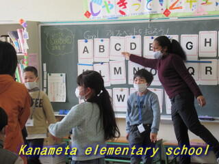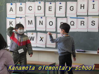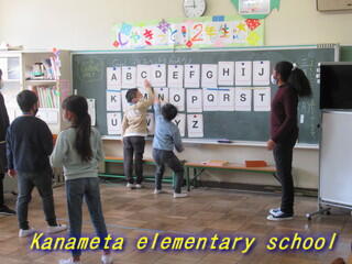 1・2年生の外国語の時間に,アルファベットを使ったタッチゲームや