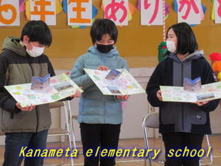 そして、在校生から6年生へ色紙のプレゼントをしました。