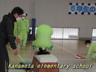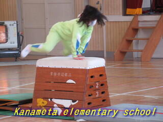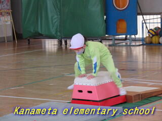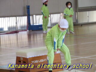 3,4年生の跳び箱運動は,台上前転に取り組んでいます。
