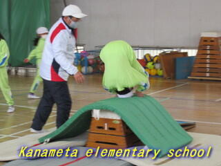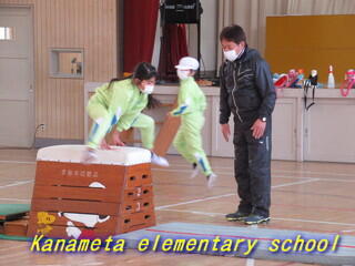 1,2年生は体育で,跳び箱運動に取り組んでいます。