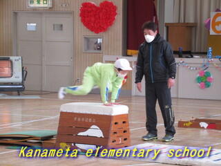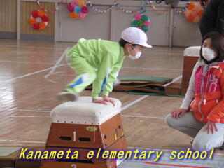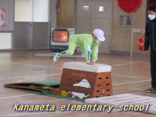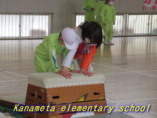 1・2年生は体育の時間,跳び箱運動を行いました。