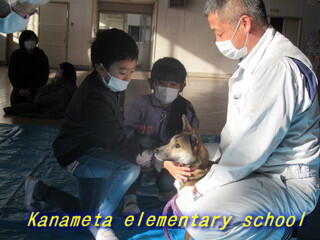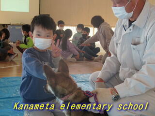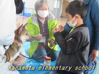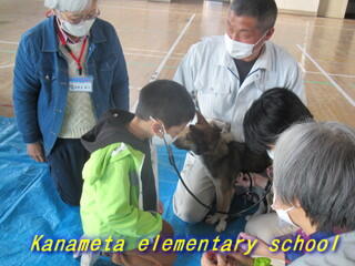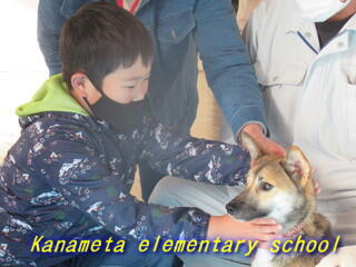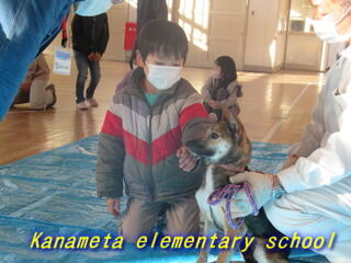 1・2年生が、犬とのふれあいをしました