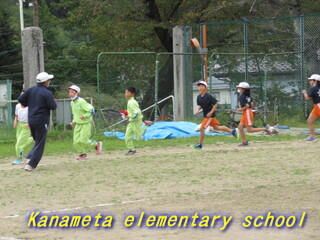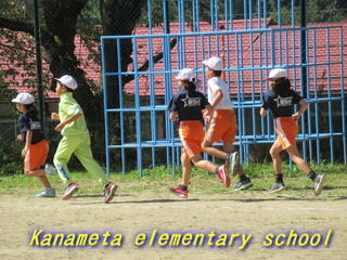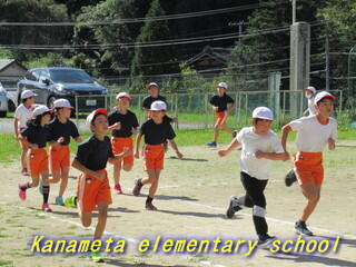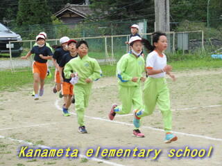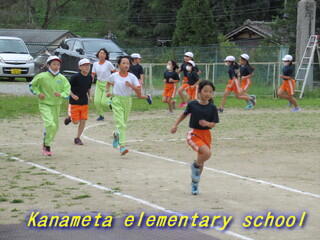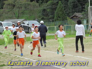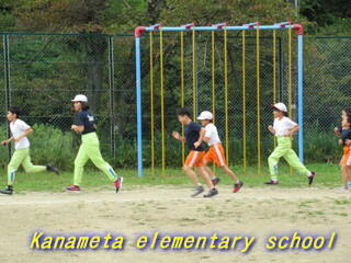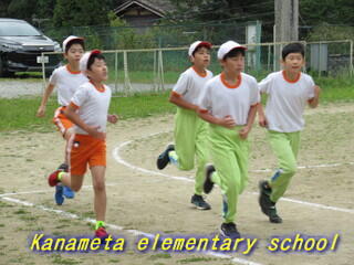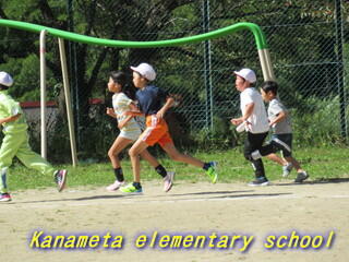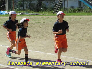 全校生で校庭を走ります。