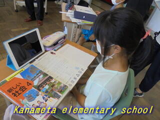 2021年8月30日 17時30分4年生で社会科の授業研究会を行いました。