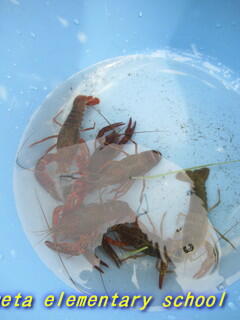 1年生は初めてのザリガニつりで,少し怖いと話していましたが,慣れてくると,とても楽しく参加できました♪