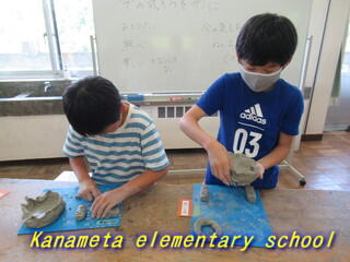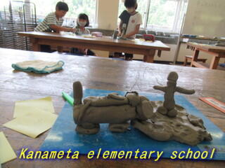 土粘土をひねったりねじったり、手触りを味わいながら楽しんで制作しました。