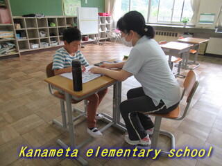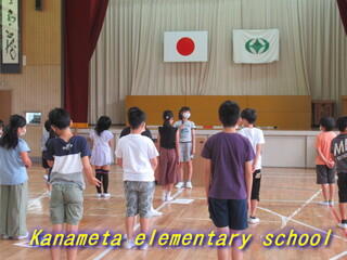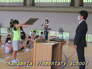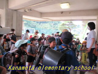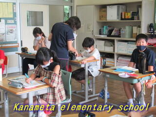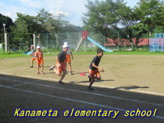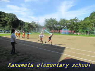 校庭ではアサガオやヒマワリが咲き、セミの声が響いています。