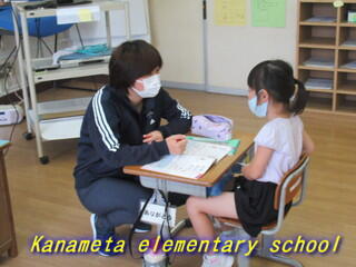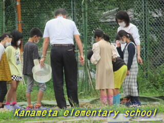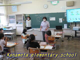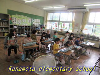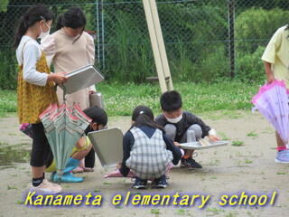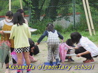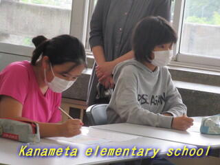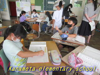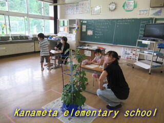 途中,2年生教室からカエルの歌の合奏がきこえてきて,