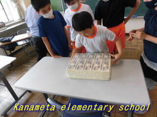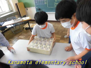 多額のお金の重さも体感し,あまりの重さに,みんなとても驚きました