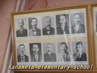 お話をうかがいました校長室で,歴代校長先生の写真を見たり
