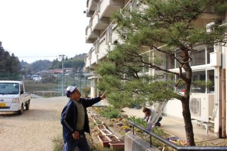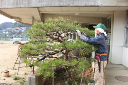 校庭の2本の松がさっぱりしました。現在、儀同さんと遠藤さんに松の剪定をしていただいています。父母と教師の会の会長も務められた儀同さんが、遠藤さん(荒和田)にお願いし、本日の作業となりました。本当にありがとうございます。尚美さんも花壇の整備を行っていました。まもなく入学式。すてきな環境で新入生を迎えます。松の写真は後日。