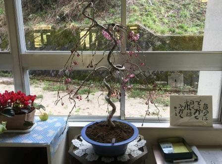 いいお天気だったので、空を眺めたら、要田上空に飛行機雲がありました。きれいな青空です。校庭の桜はまだまだですが、玄関には「仙台しだれ桜」が可愛いお花をつけました。明日の入学式にお越しの際はご覧下さい。学校では、午前中に入学式のリハーサルを全職員で行います。いよいよ明日スターです。