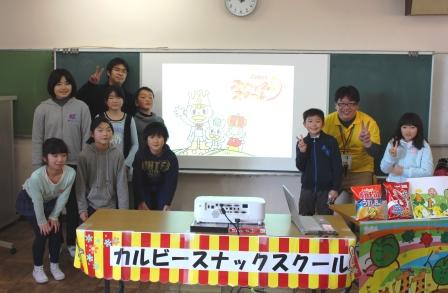2月24日(水)3・4校時に、カルビー株式会社の食育チームの鈴木さんが宇都宮から来て下さり、3・4年対象に「カルビースナックスクール」が行われました。