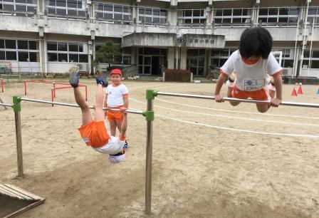 ※ 写真は11月25日の体育の時間で「逆上がり」の練習をしている1年生です。